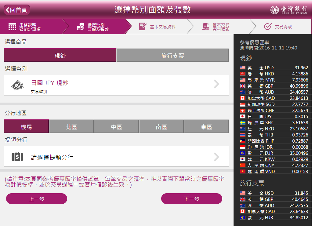 直接插入金融卡並選擇需要提領的外幣跟面額即可