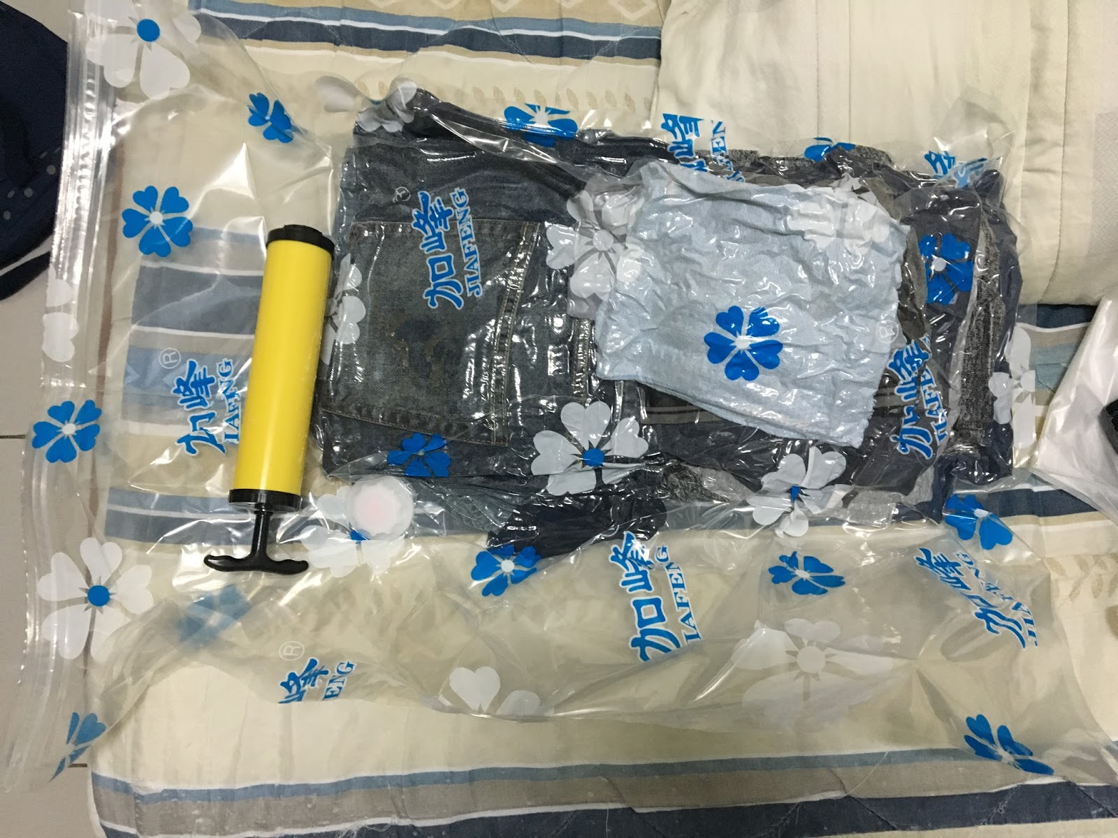 把衣服收進真空壓縮袋中,這樣行李箱會多出很多空間,但還是注意不能超過限重啊~