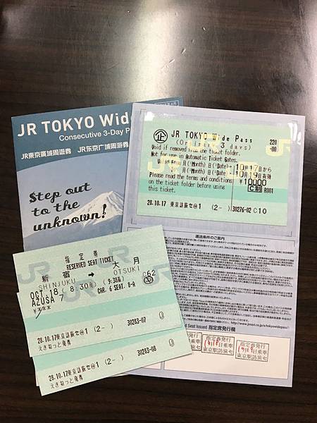 一樣搭配東京廣域周遊券(第2日),以及事先劃好的指定席